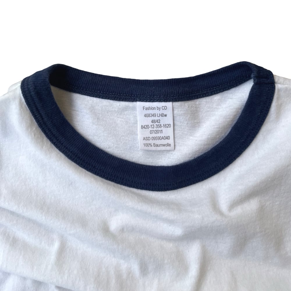 Questa T-shirt della Bundeswehr rappresenta un raro esempio di abbigliamento militare tedesco anni ’90 orientato al comfort e alla semplicità. Il contrasto tra il bianco del corpo e il blu navy del collo richiama l’estetica marittima, rendendola un capo distintivo sia per collezionisti di militaria che per chi cerca un essenziale vintage dal carattere autentico.
