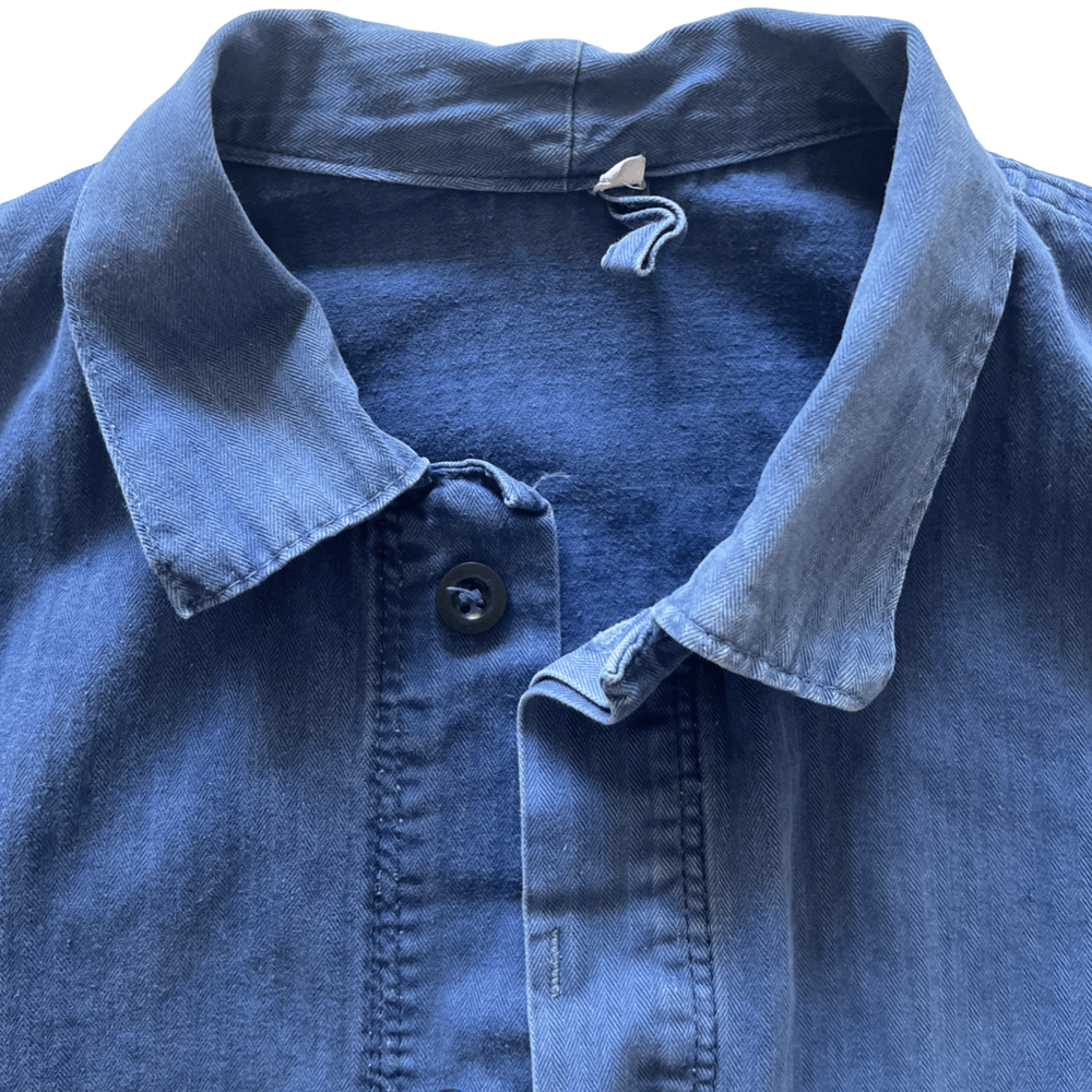 La silhouette è regolare con impostazione boxy, tipica del workwear europeo del periodo.