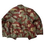 Giacca mimetica originale da truppa dell’Esercito Italiano, prodotta negli anni ’70. Realizzata in cotone robusto, presenta chiusura centrale a bottoni, quattro tasche frontali applicate e una vestibilità ampia, pensata per garantire libertà di movimento sul campo. Il pattern mimetico a macchie, tipico delle uniformi italiane pre-vegetata, testimonia l’evoluzione dell’abbigliamento operativo nazionale.