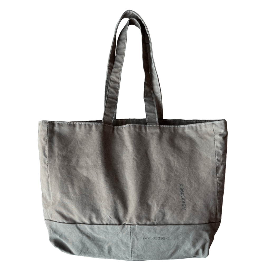 Realizzata attraverso un processo di rework artigianale, questa borsa nasce dal recupero di un sacco di trasporto per paracadute dell’Aeronautica Militare Francese (Armée de l’Air) risalente indicativamente agli anni ’70–’80.Il materiale originale, progettato per resistere a condizioni operative e carichi importanti, conserva segni, timbri e tracce d’uso che testimoniano la sua origine militare e ne rendono ogni esemplare unico.